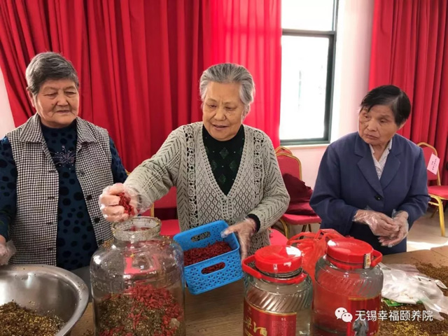 一早,在吴院长带领下大家摘桂花准备酿制桂花酒,老人们看到了也纷纷加入,顿时幸福院内下起了“桂花雨”。