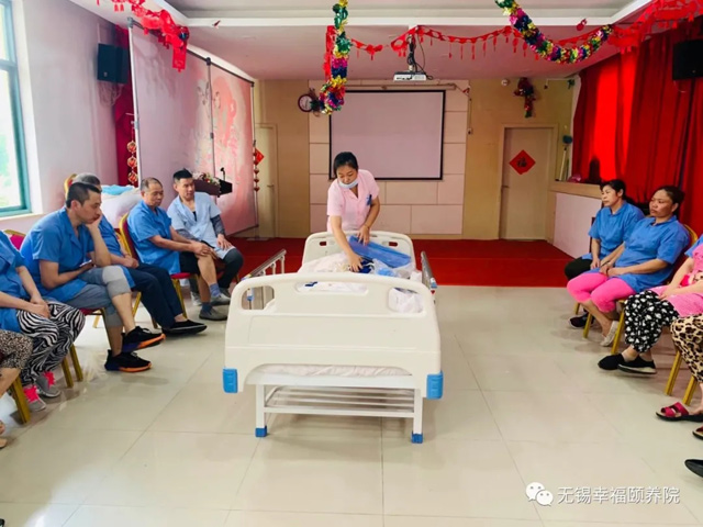 课堂上,陈主任一边操作一边讲解,不仅通俗易懂,实用性强,还加强了护理员间的互动。