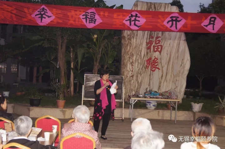 10月4日晚上6点,无锡幸福颐养院院内灯火通明,入住老人以楼号分为三组,齐涮涮坐在在入院门口的广场上开展“幸福花开月正圆”为主题的中秋古诗词接龙赛。