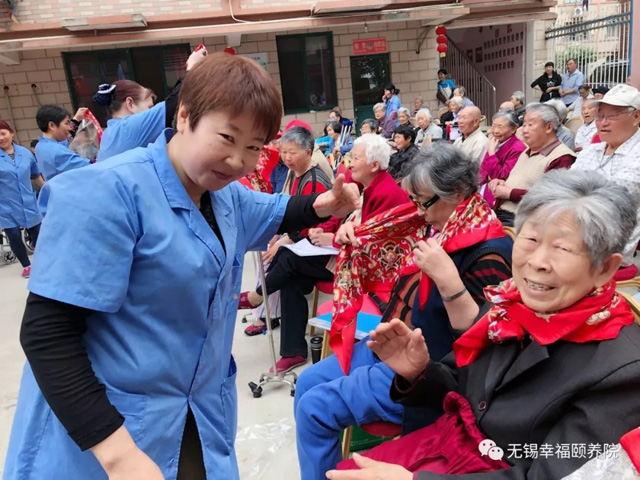 护理员为母亲们戴上爱的丝巾!