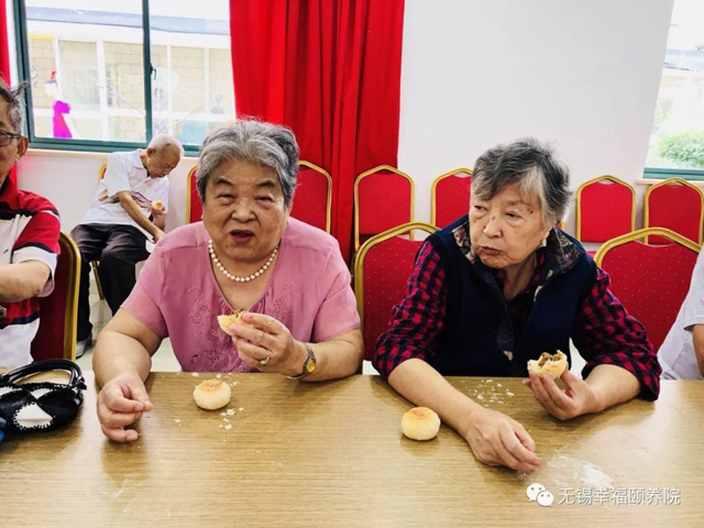 最后,老人们开心的品尝自己亲手制作的月饼。