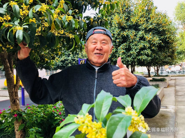 霜降时节,正是桂花盛开时节。“满树金黄细小的花儿,点缀着绿叶娇艳的季节。更有那浓郁的芳香,‘一味恼人香’袭人心怀,沁人肺腑。又在芳香中带有一丝甜意,使人久闻不厌。”…… 此 时,老人们趁着桂花盛开,纷纷与桂花留下最美丽的合影。