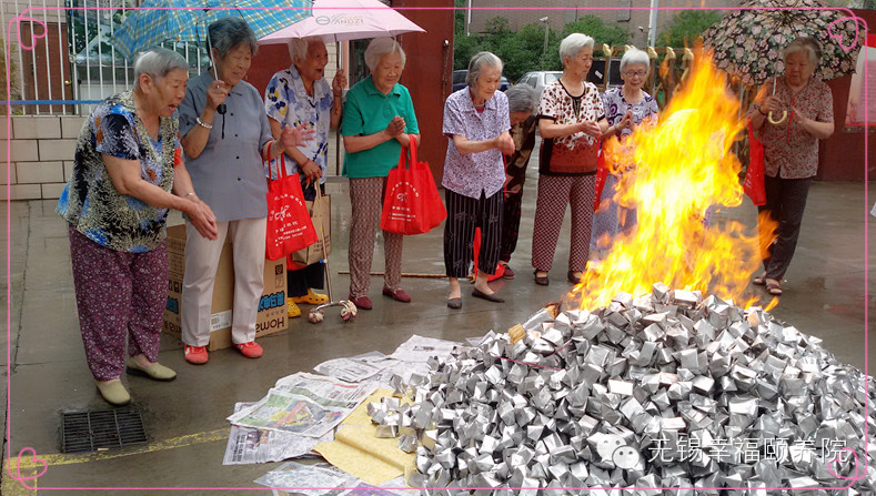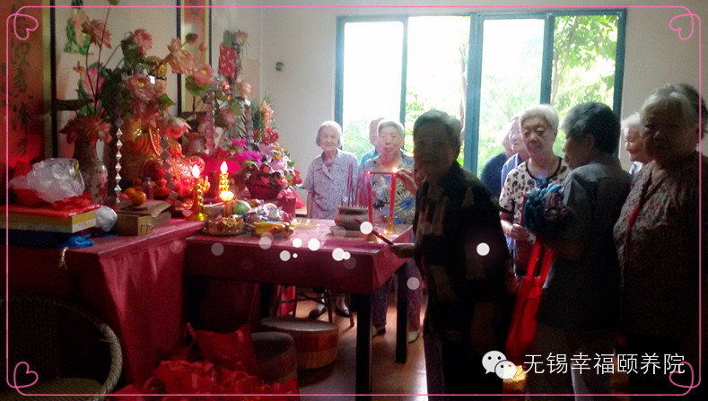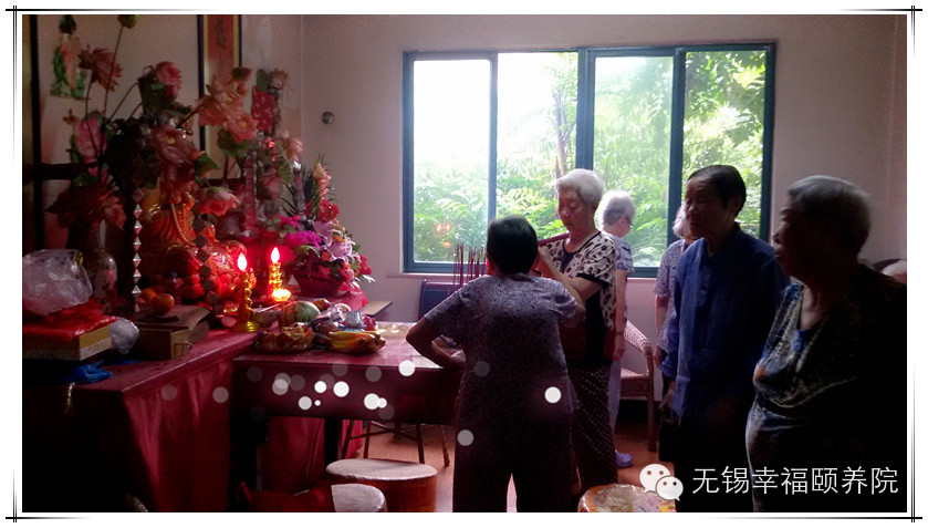 老人们今天起了个大早,在佛堂里都很诚心给菩萨上香,还买了好多贡品。