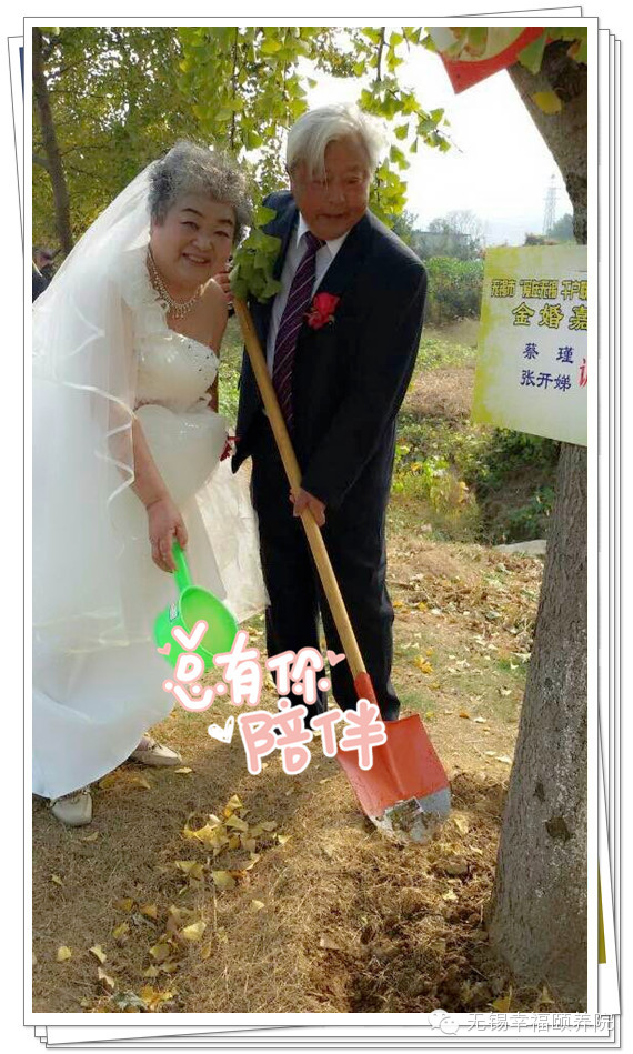 接下来安排 十对金婚夫妇们分别每对种植一颗同心树,他们互帮互助,是那么的相亲相爱